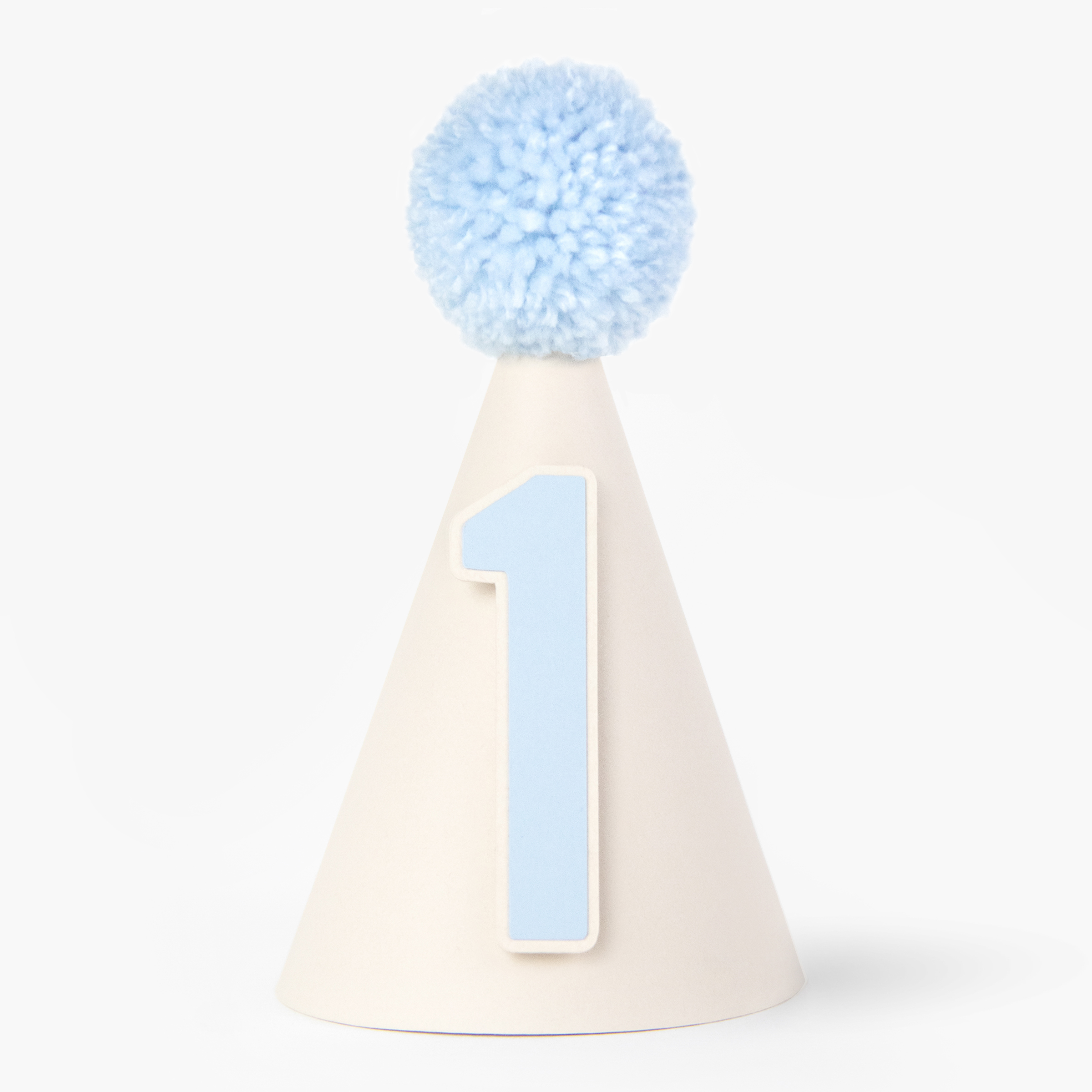 Celebrate your little one’s special day with this custom almond party hat, personalised with your choice of age or letter and topped with a powder blue wool pom pom. Perfect for Peter Rabbit parties, baby’s first birthdays and pastel-themed celebrations.