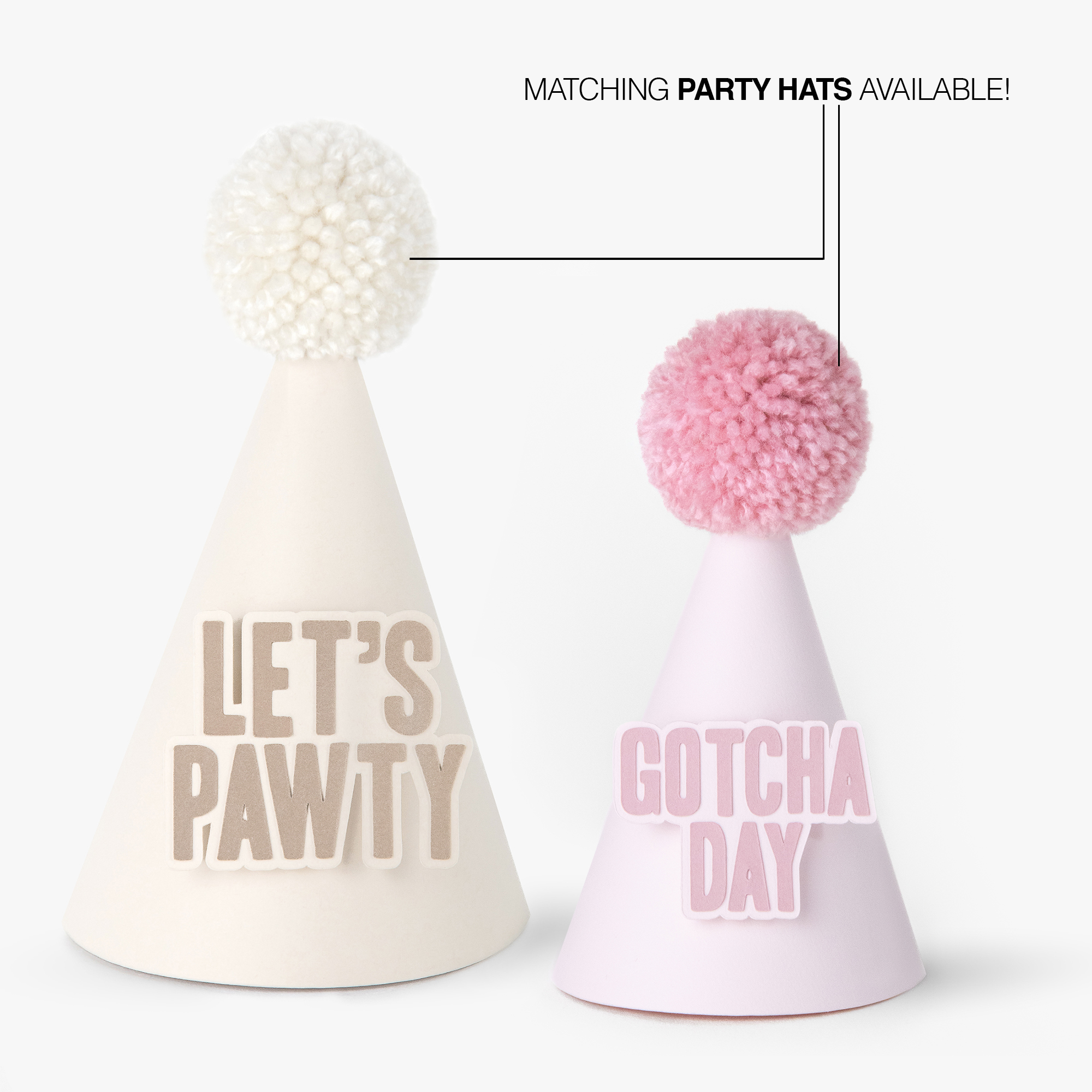 Pair your ‘GOTCHA!’ banner with matching party hats and accessories for a coordinated, photo-worthy look your four-legged star and guests will adore.