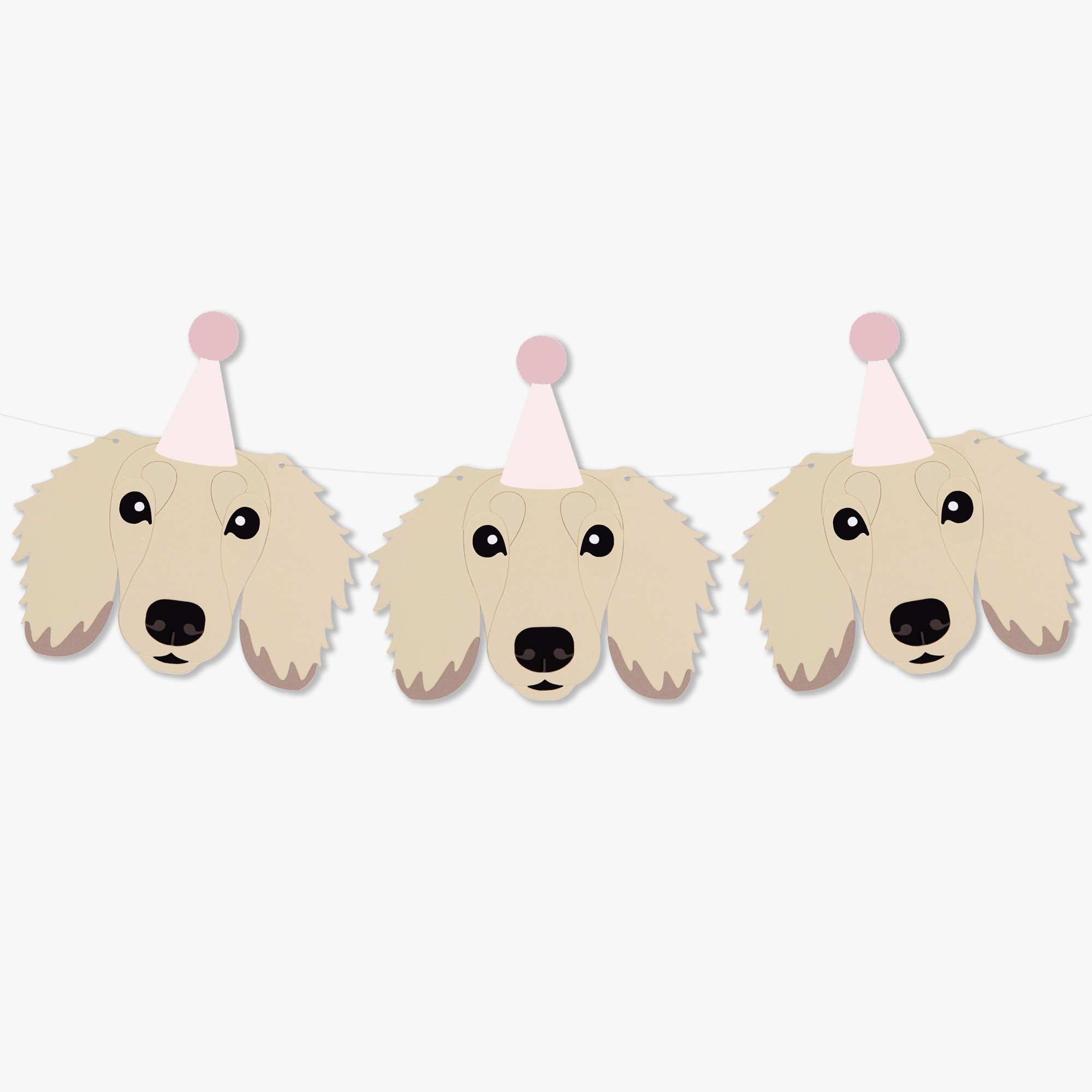 Celebrate your favourite long-haired dachshund with this Pawtrait Party Dachshund Garland, designed for dog lovers and pet-themed celebrations. Featuring 8 shaded cream long-haired dachshund faces, this handmade garland is perfect for dog birthday parties, gotcha days, pet adoption celebrations or adding a dog-themed touch to a child’s bedroom or playroom.