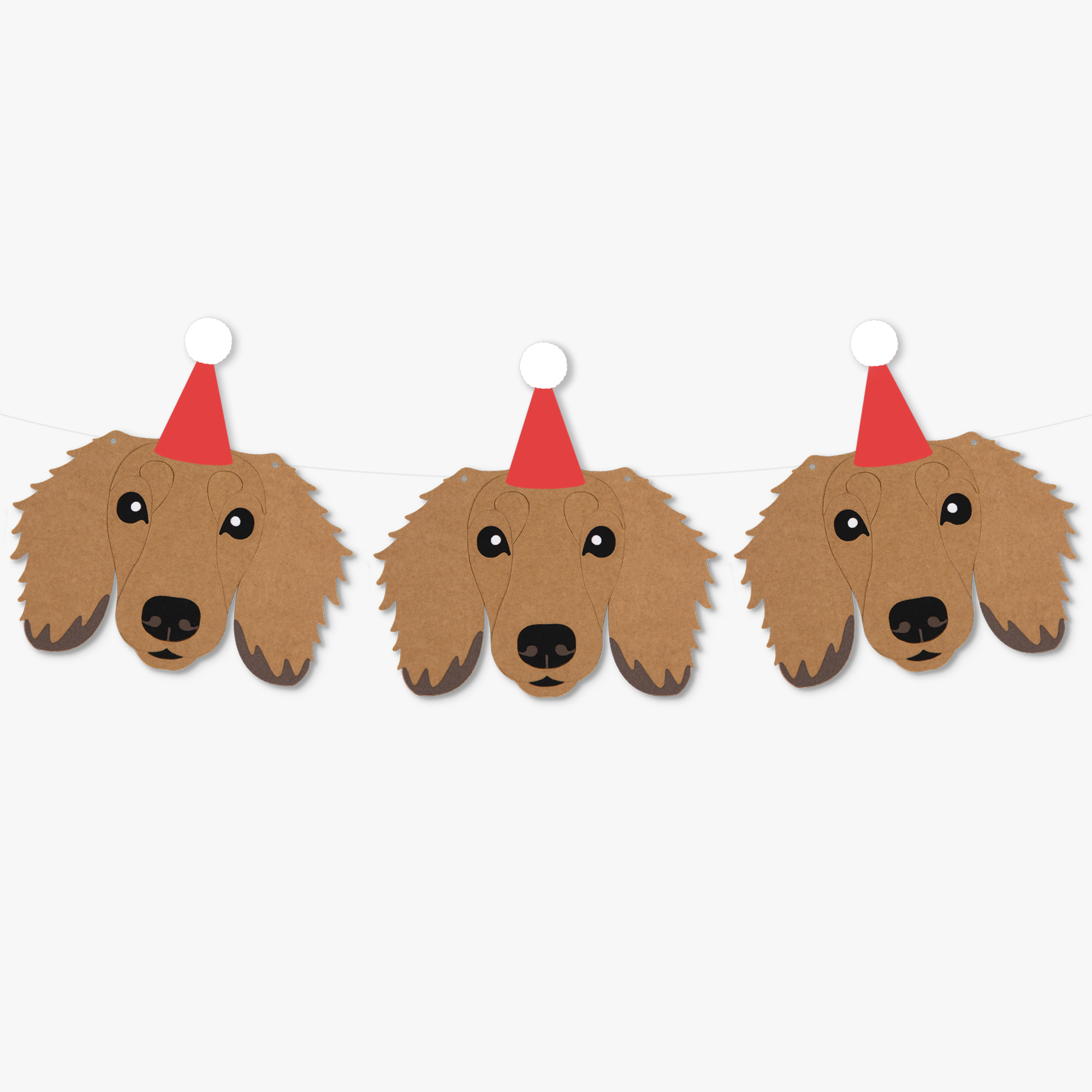 Our Pawtrait Party Christmas Garland is perfect for dog lovers wanting to add a fun and festive touch to their home. Whether styled in a living space, a child’s bedroom or playroom, or gifting as a cute Christmas present. Each garland features your chosen Pawtrait Party dog design, finished with a classic red Santa hat.