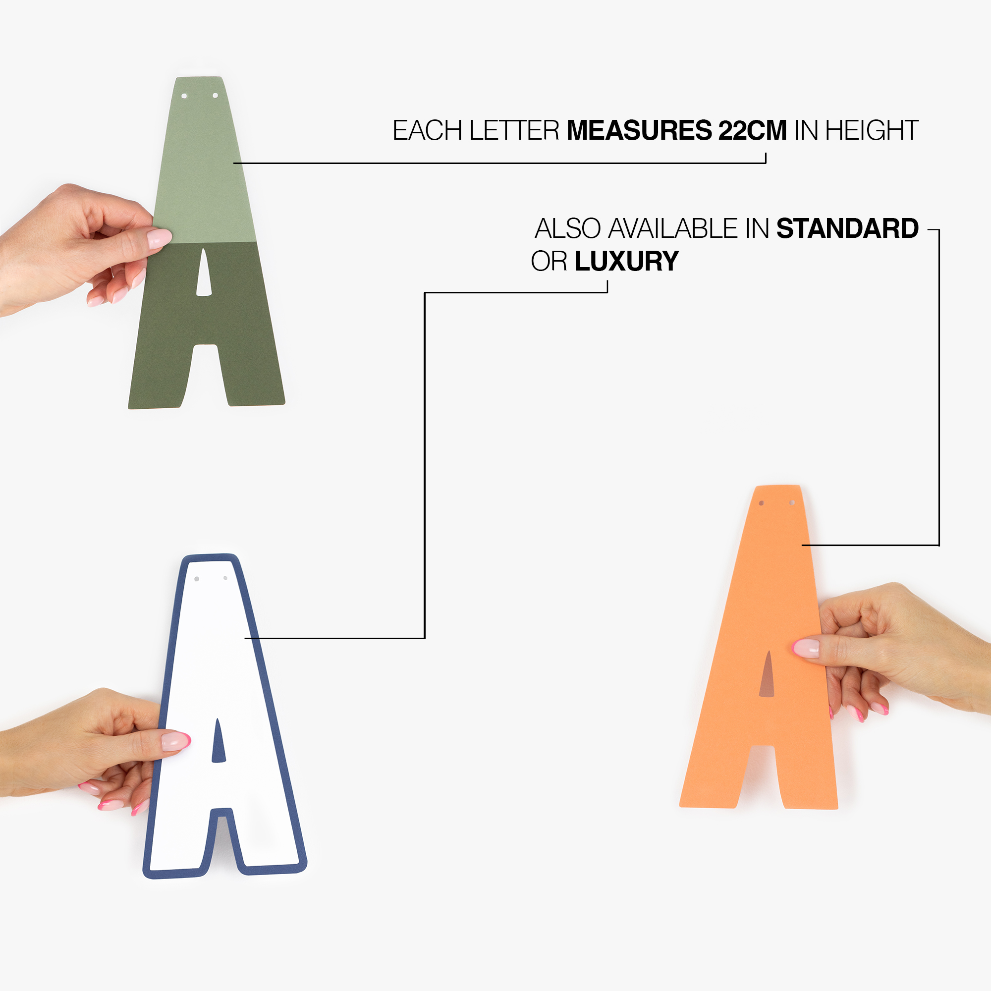 Choose from over 30 vibrant shades to perfectly match your party theme. Each letter is crafted from premium card stock and measures 22cm tall, pre-strung on clear string for a clean, seamless display across any wall or backdrop.