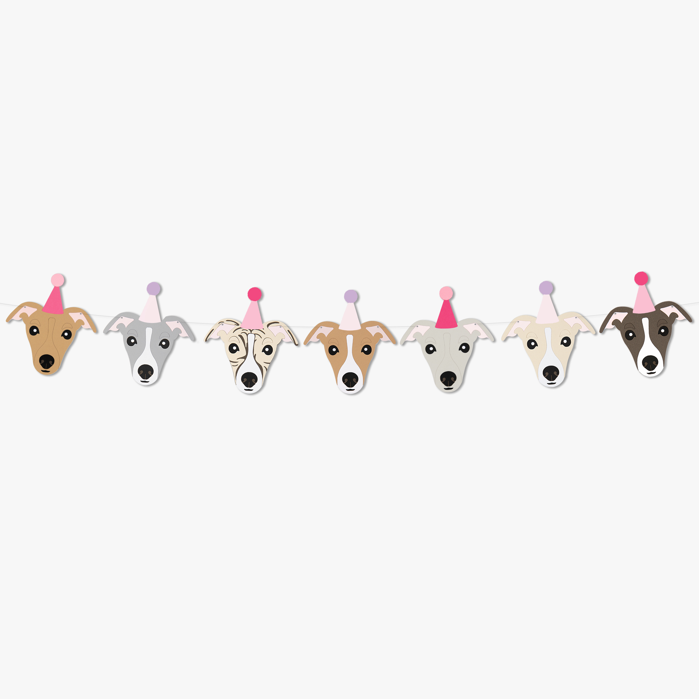 Whether you’re decorating for your favourite Whippet’s birthday party, an Italian Greyhound–themed celebration or adding a dog-themed touch to a child’s space, this garland brings personality and a pop of fun to any setting.