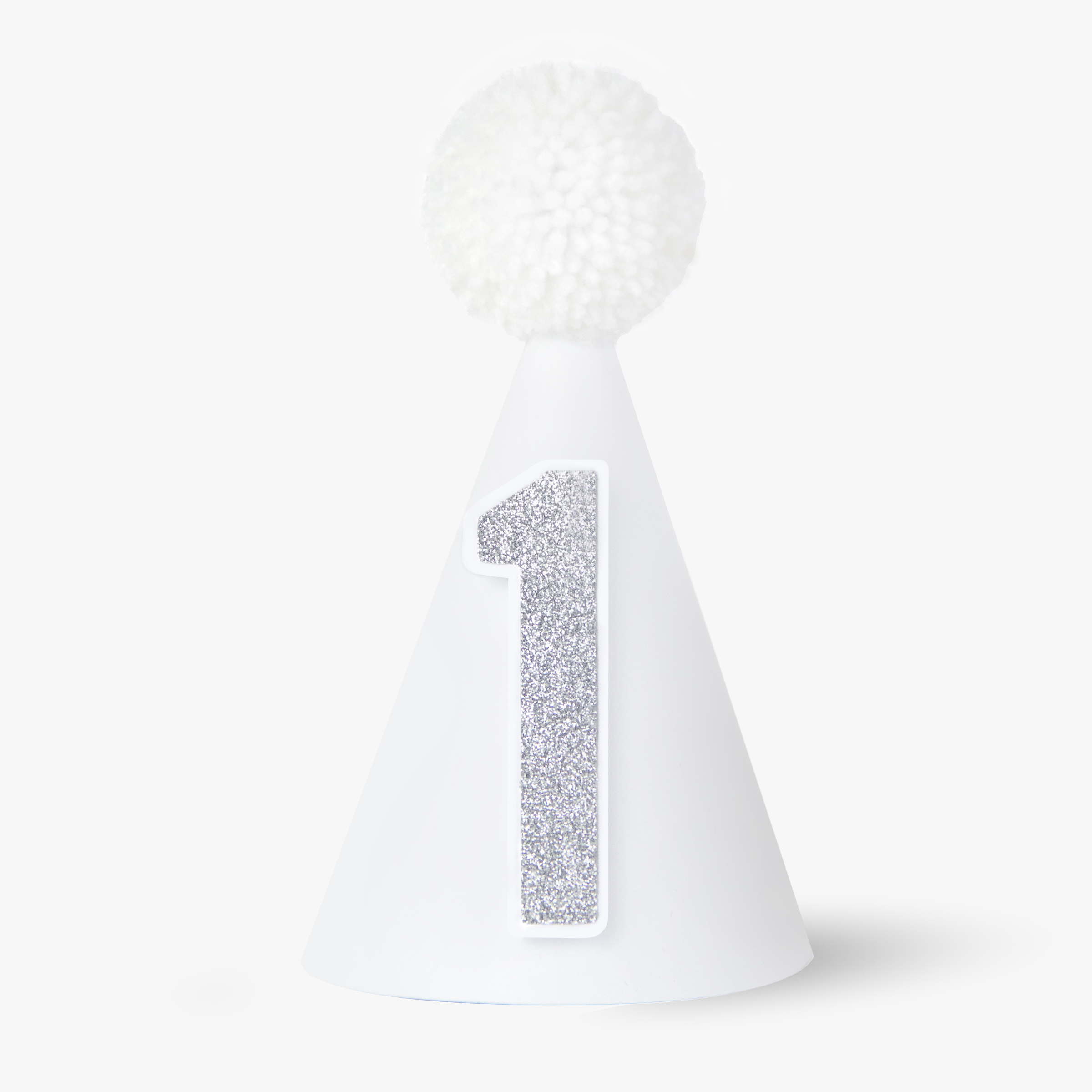 This white and silver glitter party hat photographs beautifully, making it ideal for first birthdays, minimalist parties, winter birthdays, monochrome themes and elegant cake smash photos. A simple, fuss-free essential that adds a subtle sparkle to any celebration.